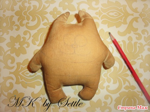 После того, как игрушка полностью высохнет, начинаем раскрашивать ее акриловыми красками. Для начала отмечаем все контуры карандашом.