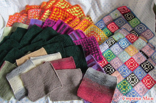От Паниковской Ольги, Краснокаменск, Забайкальский край. прибыли - море квадратов спицами и крючком и четыре вязаные квадратиками наволочки.