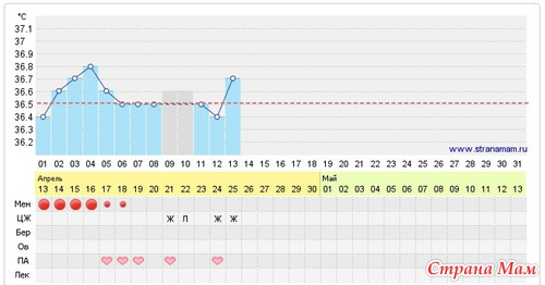 13 день цикла - и по графику БТ - сегодня возможно была овуляция.