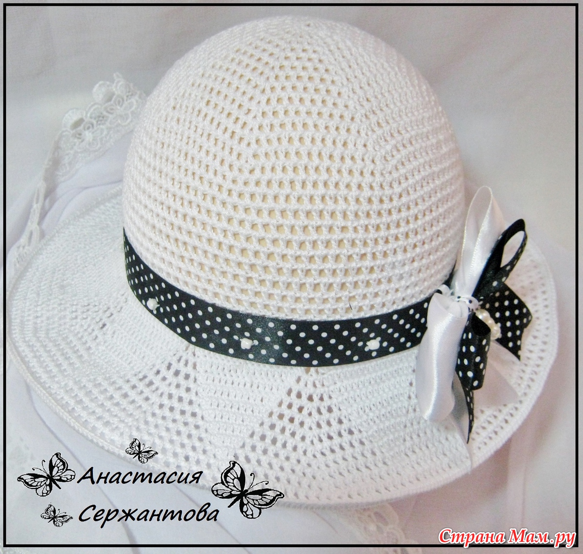 Вдохновлялась работой знаменитой рукодельницы Пуси. только у нее шляпка с орхидеей, а я бант прицепила. шляпы мне вязать понравилось!)))кому надо-обращайтесь. в общем, на эту шляпку у меня ушло полтора моточка пехорки ажурной, крючок 1.3. в поля ввязала самую толстую леску в 5сложений. правая сторона так из за бантика провисла)к этой шляпе еще будет платье! по секрету, это наряд на аленкин день рожденья))))девоньки, у меня есть схема только верхней части шляпки, а вот поля вязала уже сама, кому надо-объясню как их вязать. еще фото в разных ракурсах, чтоб разглядеть.