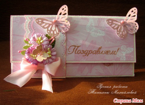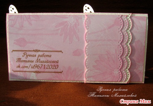 Давно ничего не делала и не показывала, все заказы отложены на май в связи с моим переездом и новой работой, времени не хватает вообще ни на что. Но один конвертик все же сделала, свой очень хорошей знакомой, очень просила меня, не смогла отказать. И снова розовый