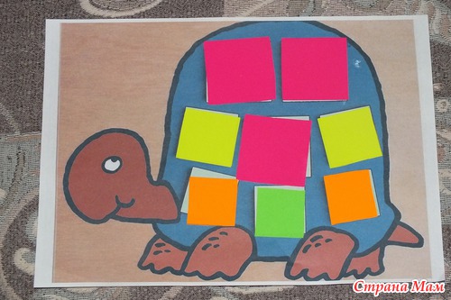 Черепаха. Украшали квадратиками из самоклеящейся бумаги.