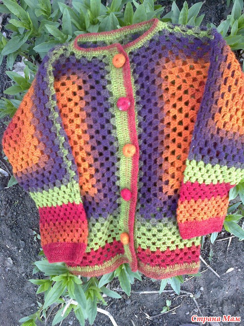 Вот такую кофточку на весну я связала для моей маленькой доченьки из Кауни 8/1 крючком №1, 75 связалась очень быстро где-то за два дня. Пуговички - мокрое валяние, внутри собачья шерсть, снаружи распушенная шерсть из кауни)))