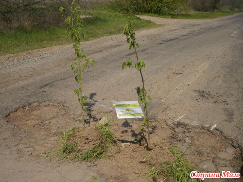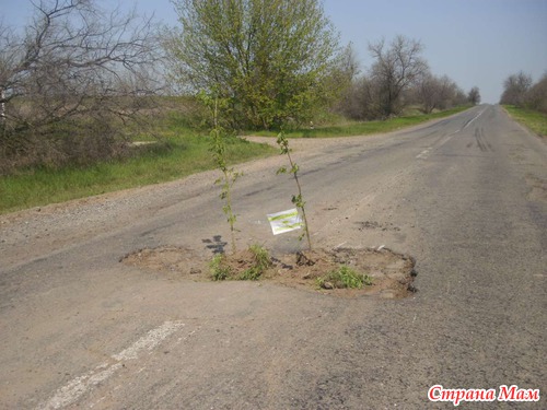 Весной же наши активисты пошли дальше! На трассе Измаил - Болград они в ухабах посадили вишневый сад!!! И объявили "заповедными парками"