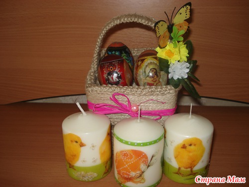 ну и на последок декупаж свечек на пасхальную тему, скоро праздник, надо готовиться