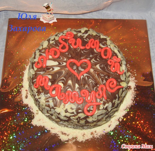 И еще вот такой простой тортик, заказ моей одноклассницы, она не хотела мастику или крем, просила просто глазурью полить, ну я вот так сделала, мне, честно сказать, не нравится
