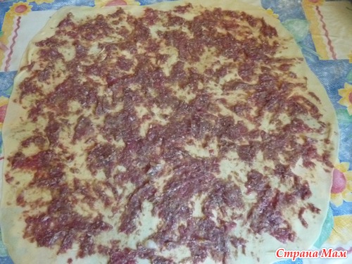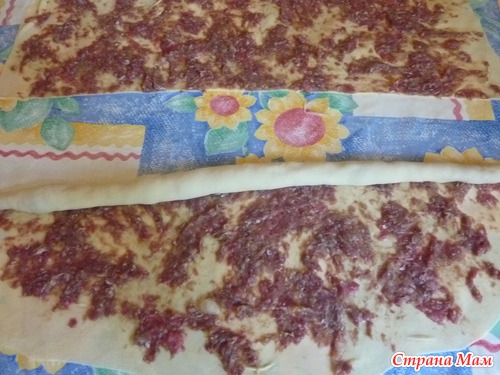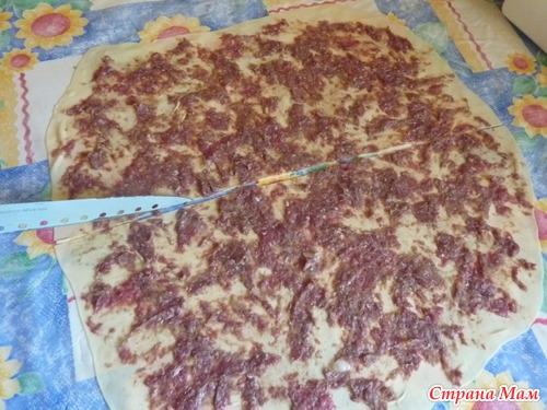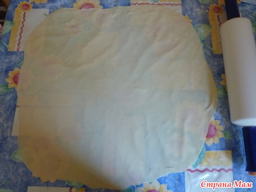 Тесто раскатать в тонкий пласт.