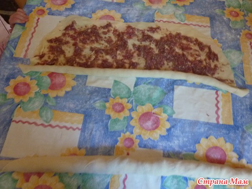 Тесто и фарш делим на 2 равные части