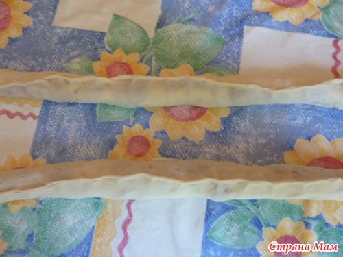 разрезаем лист посередине чтобы пельмешки не получились слишком толстыми, крупными.
