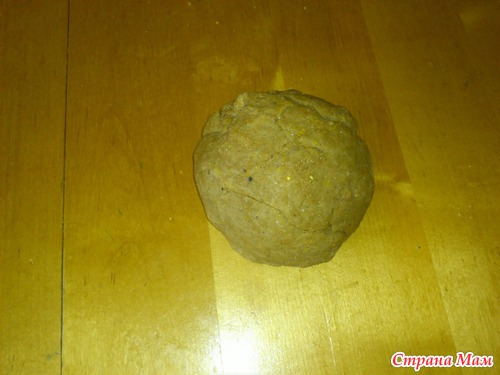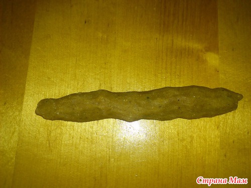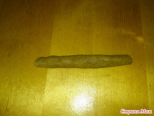 Обратите внимание, тесто получается достаточно хрупким, работать с ним не очень просто. Поэтому, перед тем, как раскатать из него колбаску надо сформировать её руками: