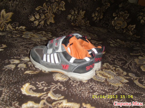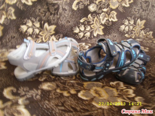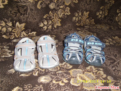 Синие - состояние хорошее, длина по стельке 17 см, р-р 27. По 250 рублей.