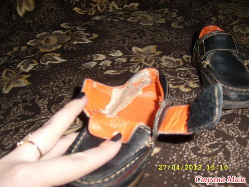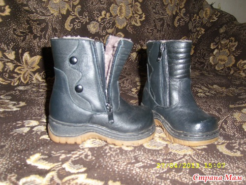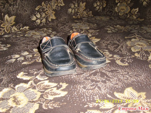 Ботинки (кожа). Сверху выглядят нормально, немного обшарпан носок на одном, это легко замажется кремом для обуви. Изнутри облазит материал (типа пленочки покрытие). Размер 25, длина по стельке 16 см.