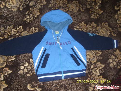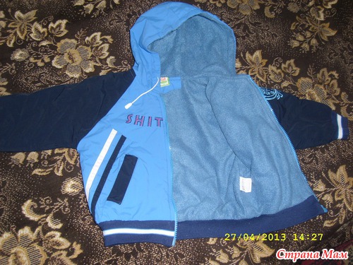 Ветровка на флисе с капюшоном, очень удобная. Сосотояние хорошее, б/у немного. На рост 92. Цена 250р.