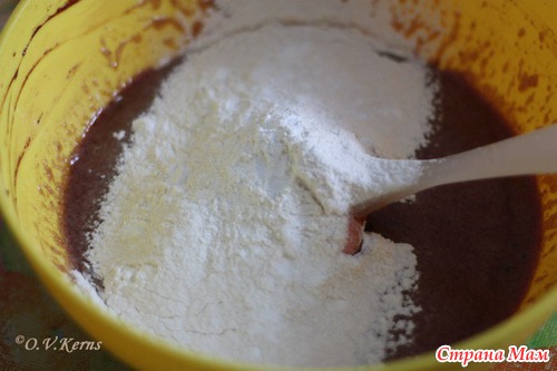 Добавить просеянное какао, перемешать.