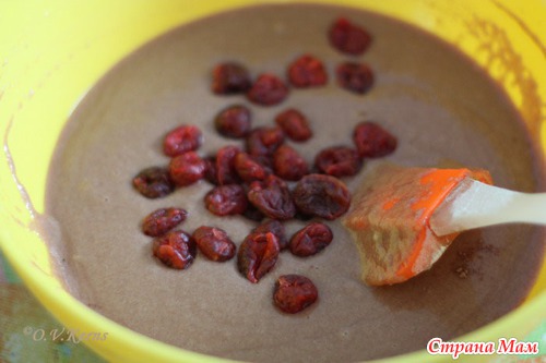 Грецкие орехи крупно порубить. Вишню промыть, обсушить. Добавить орехи и вишню в тесто, перемешать.