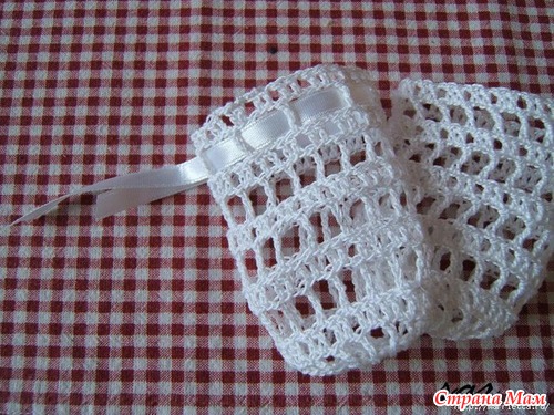 Ничего сложного, вяжем мешочек, который собирается на ленточку