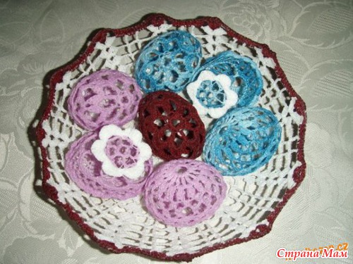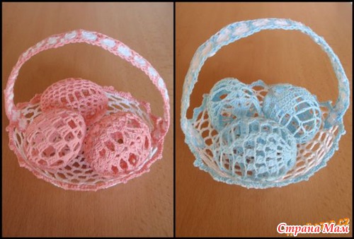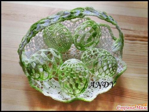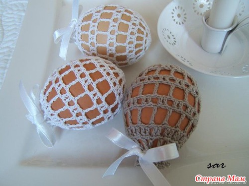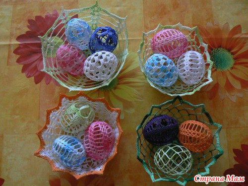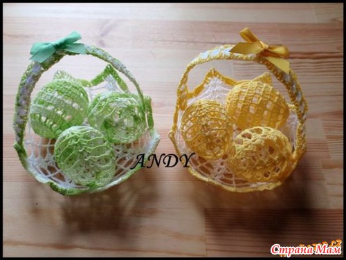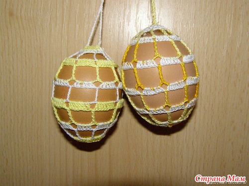 Можно также обвязать сваренные и окрашенные пасхальные яйца, связать для них мешочек