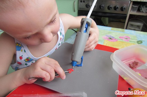Берем клей пистолет.
