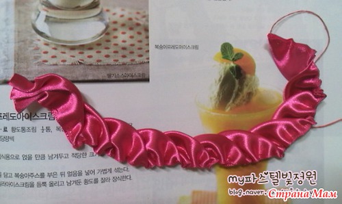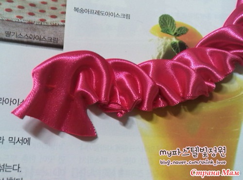 Делаем на ленте всего несколько стежков, чтобы потом можно было стянуть нитку.