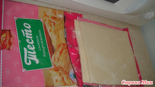 Подготавливаем тесто согласно описанию( как правило, разморозить при комнатной температуре минут 20.., раскатать)