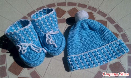 Тэги: крючком, для новорожденных, шапка, пинетки, похвастушка