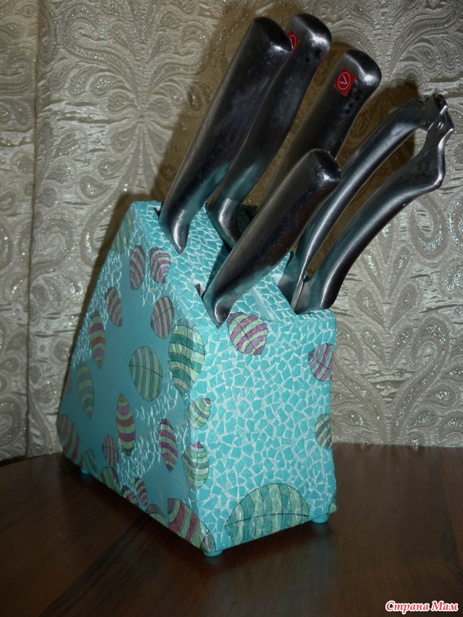 Спасибо, страномамочкам за идею, удалось отреставрировать подставку под кухонных ножи. Декупаж салфетками и яичной скорлупой. Эта подставка родственница вот этой рамочки - те же листики и цветовая гамма