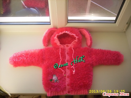 Связала кофту "Зайка", до этого были комбенезоны для новорожденных "Зайка". Кофточка теплая, мягкая и очень веселая, маленькая заказчица прямо в ней и ушла, покачивая очаровательными ушками