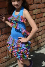 Связала такой наряд на лето, манюне вроде нравилось до тех пор пока братец решил не пошутить, сказал ты что, клоуном идешь работать... все, у нас слезы, сказала носить не будет, сколько не переубеждали - одела только для фото. боюсь что работа моя на смарку пошла... жалко. а каким будет ваше мнение, вы бы своему ребенку такое платье одели?