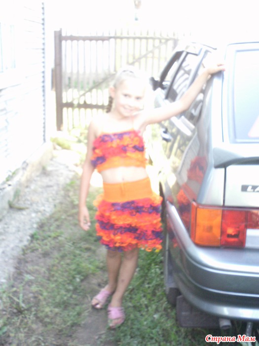 Связала такой наряд на лето, манюне вроде нравилось до тех пор пока братец решил не пошутить, сказал ты что, клоуном идешь работать... все, у нас слезы, сказала носить не будет, сколько не переубеждали - одела только для фото. боюсь что работа моя на смарку пошла... жалко. а каким будет ваше мнение, вы бы своему ребенку такое платье одели?