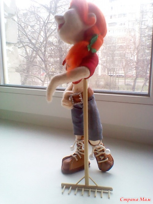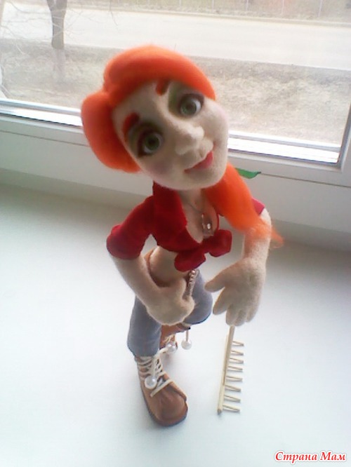 Итак вот такой заказ мне поступил, сделать рыжую девочку с граблями. прототипом служит девушка, которая постоянно наступает на одни и те же грабли. Девочку зовут Таня как и меня))) значит и девочка будет тезкой))) Таня делает Таню для Тани, Здорово)))