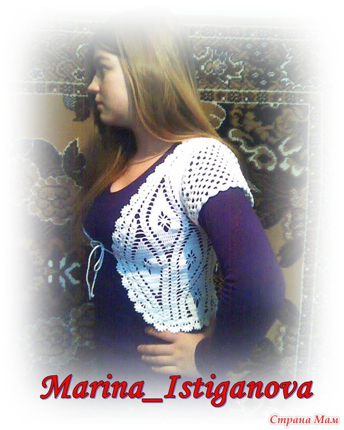 Вязала болеро для дочери знакомой. Надеюсь, что с размером не ошиблась - вязала без примерки. А вот на дочке моей, кажется, немного маловато...
