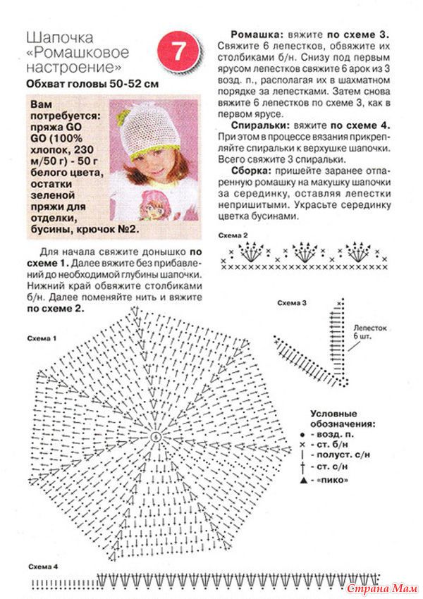 Связала шляпку с ромашками. Хотелось, чтобы было воздушно и нежно. Думаю получилось. Жаль, что дочке чуть великовата.