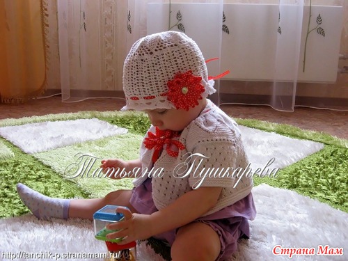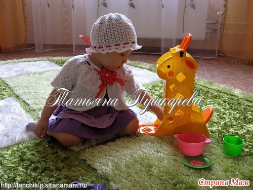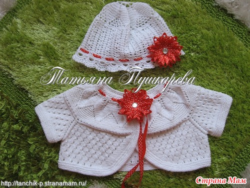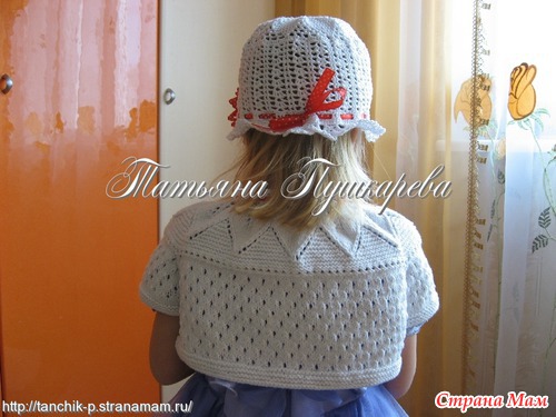Комплект связан на заказ для 2-хлетней девочки с учетом "на вырост". Давно мне приглянулось это болеро. Вот только с описанием пришлось помучиться: собирала его по кусочкам, как пазл