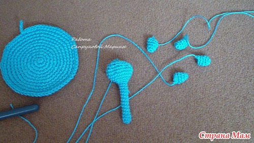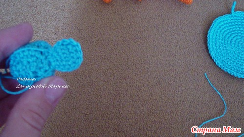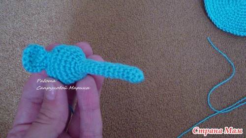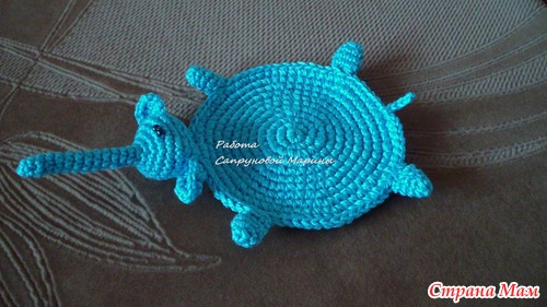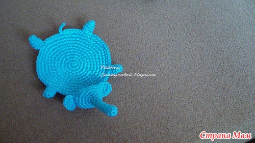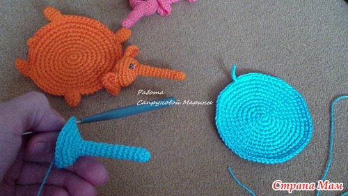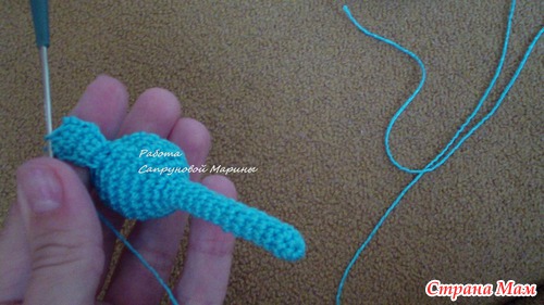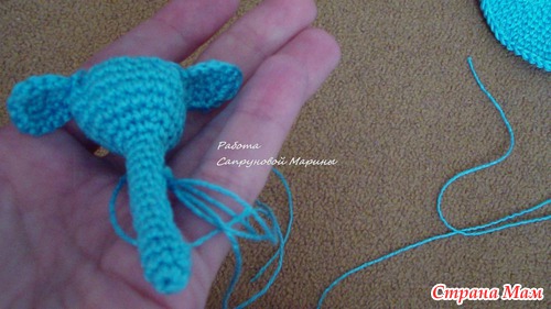 Но попытаюсь объяснить: сразу вязала "туловище" - просто кружок столбиками без накида с прибавками по 6 петель в каждом ряду до нужного размера (в 2 нити). Ножки: в кольцо амигуруми 7 ст/б накида, без прибавок вязала 4-5 рядов; голову начинала вязать с хобота (аналогично ножкам, только вязала длинее, примерно рядов 15), потом делала равномерные прибавки через столбик, чтобы получилась голова (не могу точно сказать сколько делала прибавок - все на глаз), Затем ряд вязала без прибавок, потом начинала делать убавки (набить голову наполнителем - у меня поролон).