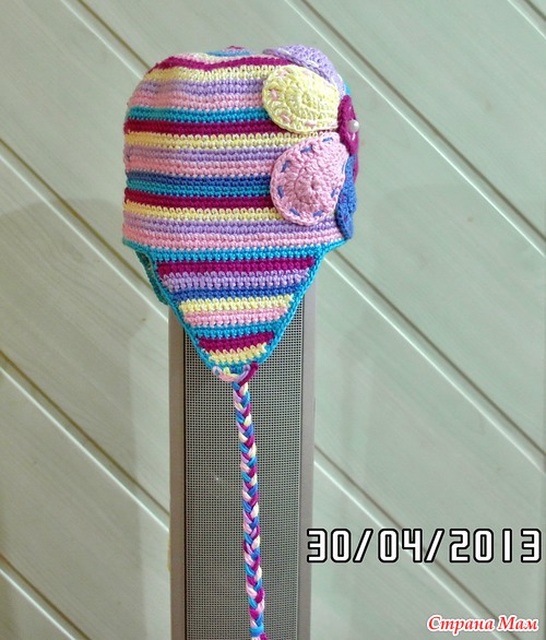 Вот связались такие две шапочки для годовалой девочки на прохладные летние деньки. Котик из ниточек катон с полиакрилом, цветная шапочка из катона. Спасибо что заглянули!