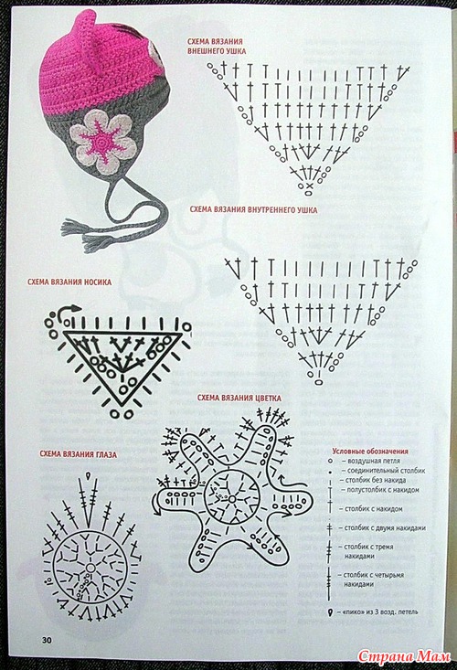 Вот описание к первой шапочке. Только глазки вязала без белой обвязки, так как получались очень большие для такой маленькой шапочки.