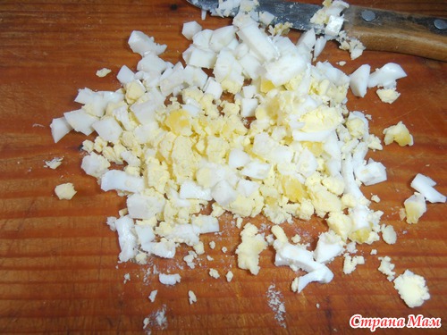 А начинку делала очень просто, нарезала вареные яйца