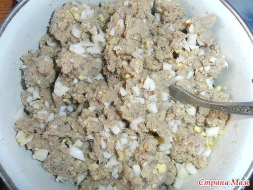 обжарила лук, затем ливер все смешала,