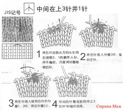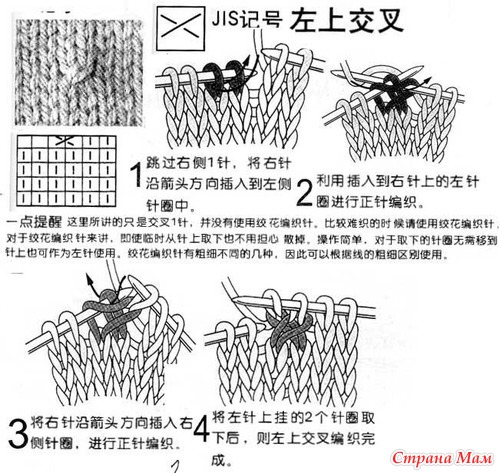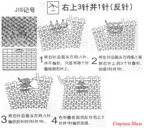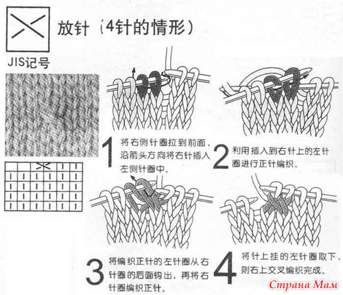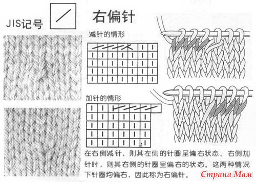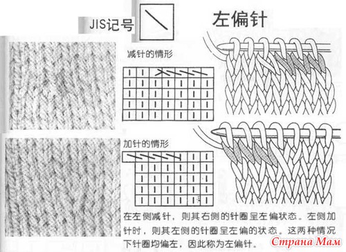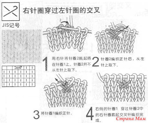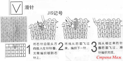 Условные обозначения к японским схемам вязания. Спицы.