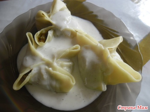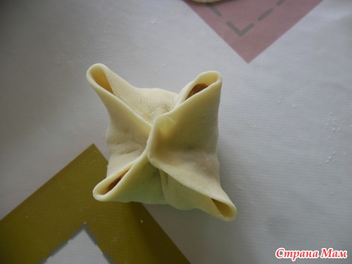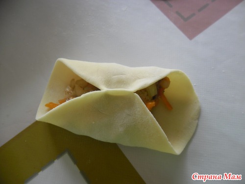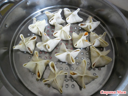 Потом приехала подруга из Германии и научила меня залеплять манты вот таким способом.. И быстро, и красиво, и мант съедается полностью.