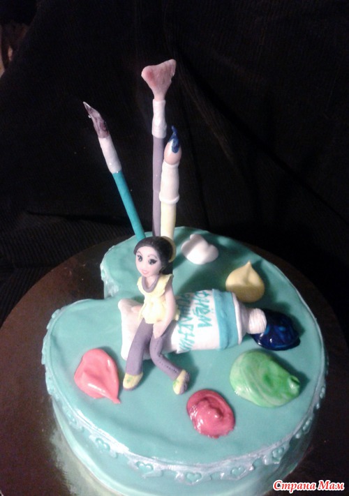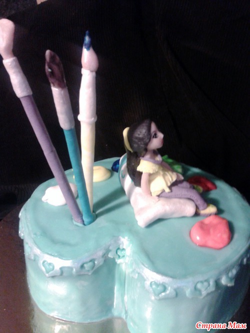 Опять фото-ужас, уж простите за это Этот заказчицам очень понравился внешне, очень здорово когда попадаются такие эмоциональные клиенты Внутри добош, т. к. девушки не знают когда точно будут праздновать День Рождения юной художницы. Сам тортик маленький 1,7 кг. Читать полностью
