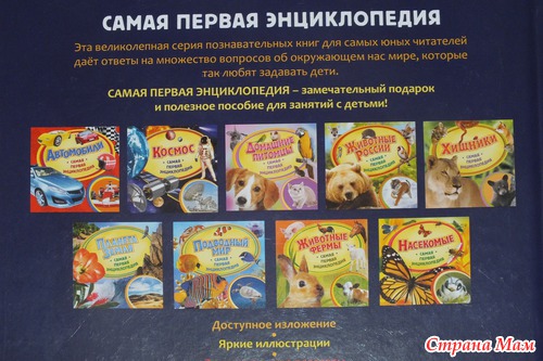 Самая первая энциклопедия. Эта великолепная серия познавательных книг дает ответы на множество вопросов об окружающем нас мире, которые так любят задавать дети. Большой выбор, яркие иллюстрации, интересные факты. Замечательный подарок! Мне эта книжечка обошлась в 110 рублей.