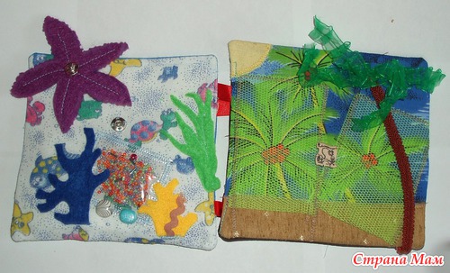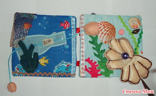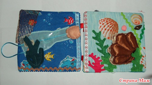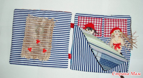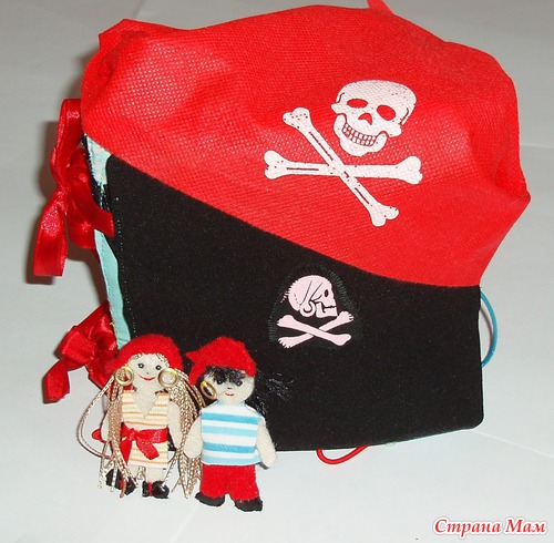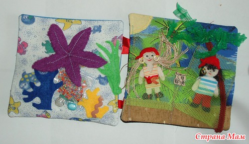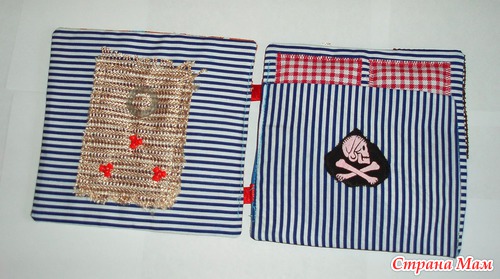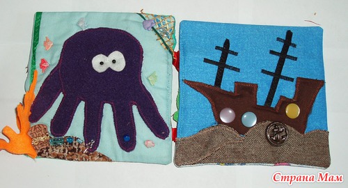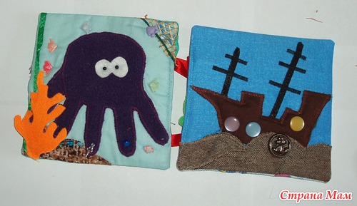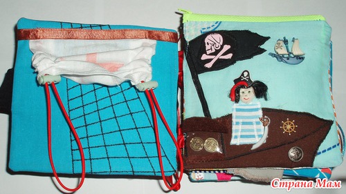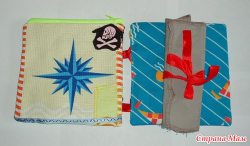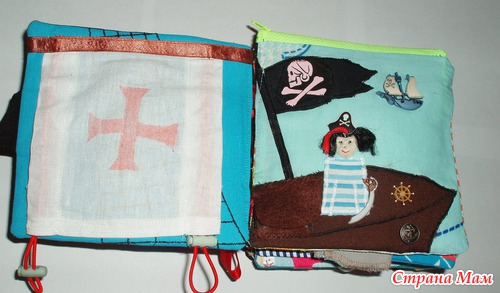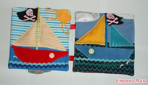 В лодках карманы, можно садить кукол. Паруса набиты - имитация раздутого паруса. Различные пуговки, тесьмы. Игровые странички