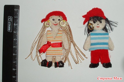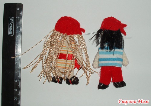 Куклы-пираты. Мальчик и девочка. Платье и рубашка снимаются, можно сшить новую одежку. Банданы и ботинки пришиты.