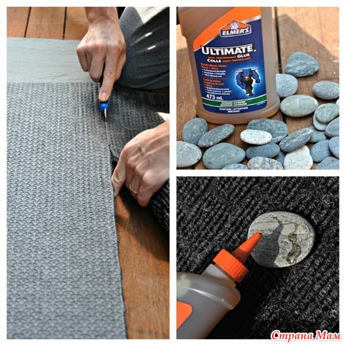 3. Пока камешки сохнут, достанем старый ковер или ковролин и отрежем кусочек. Вырезать отрезок можете любой формы, какая только Вам нравится или нужна для декора.