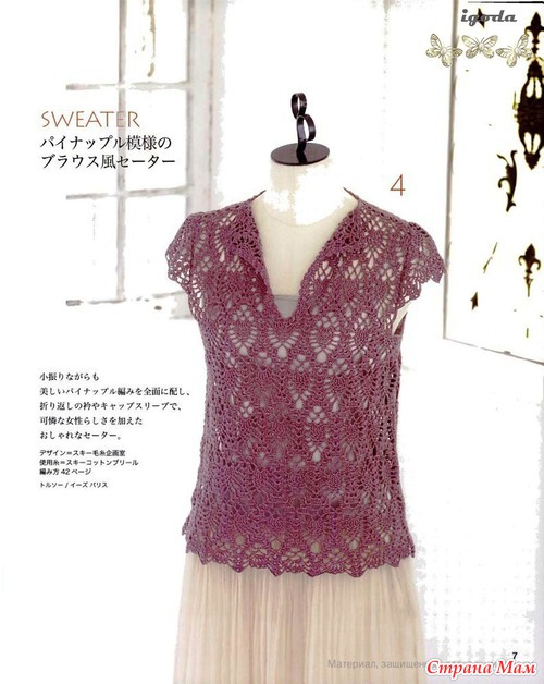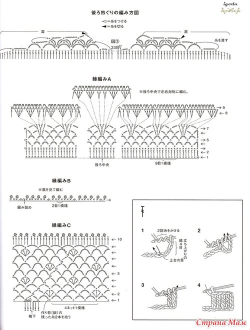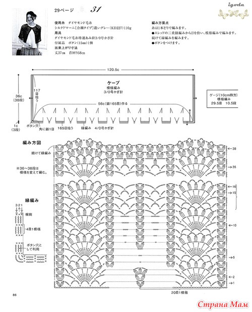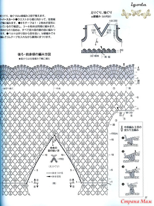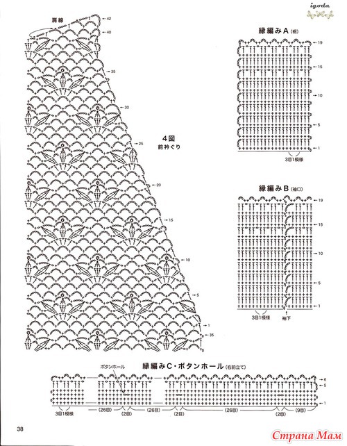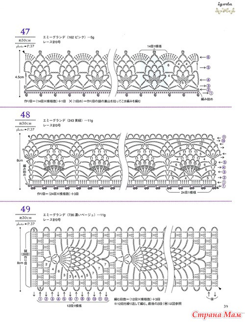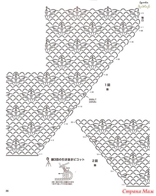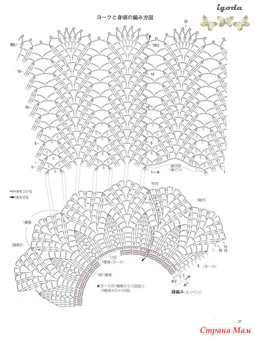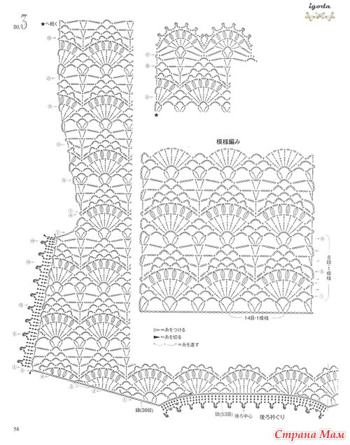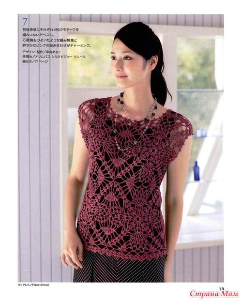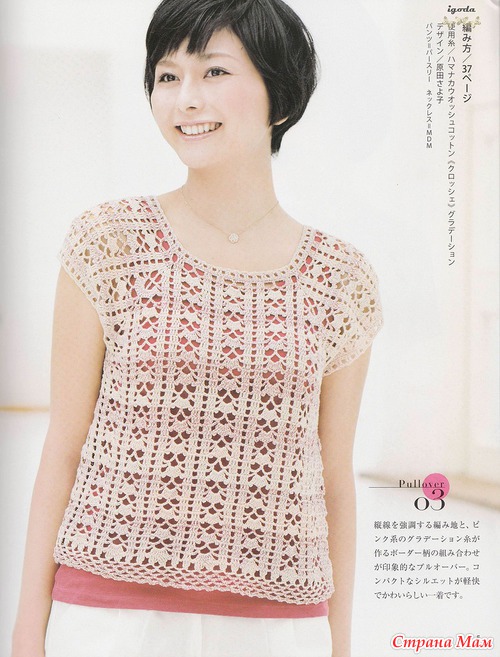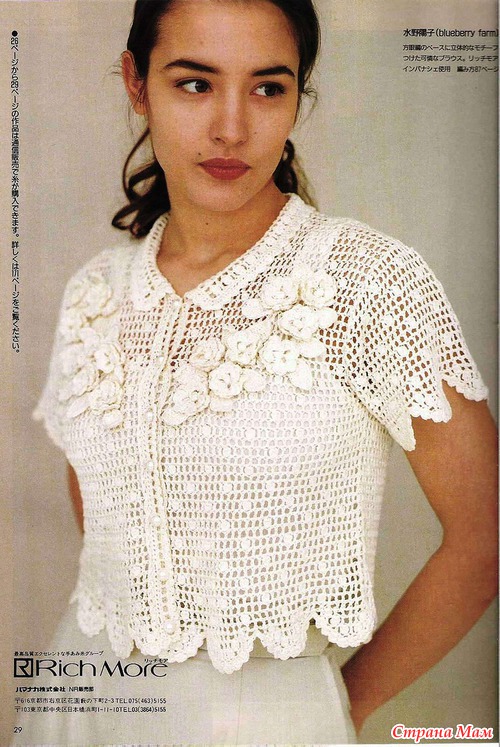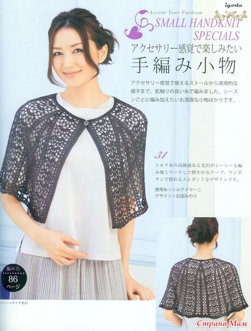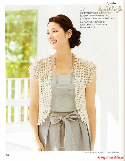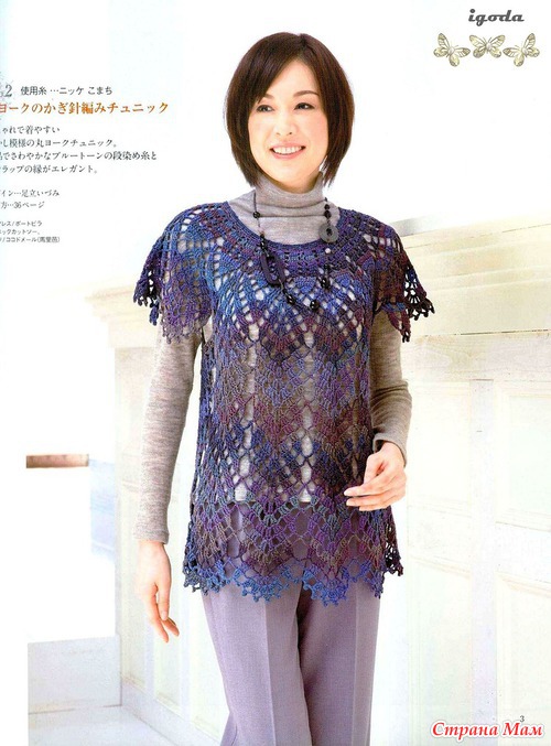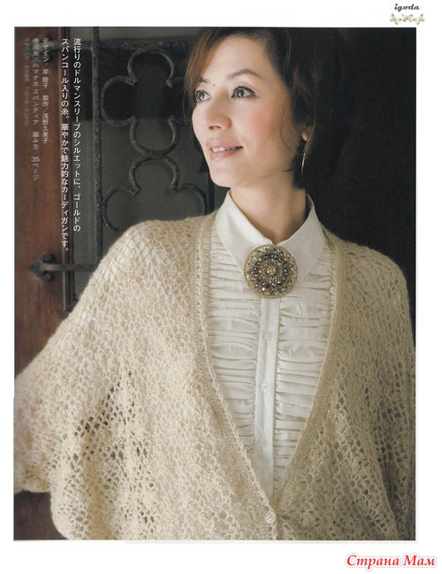 Огромное спасибо за подборку.Очень красиво.Я в этом убедилась воочию.В прошлом году была в Японии и что я там увидела!!!!Огромное количество женщин ходят в вязаных вещах крючком.Боже какая прелесть.А как связано???Можно подумать что машина вязала.Красота.Обращала внимание потому что сама вяжу крючком разное и много.(не на продажу).Купила очень много журналов и новые и старые перевод практически не нужен.Очень подробные и доступные схемы.Получила огромное удовольствие.