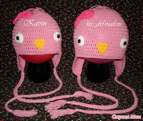 А это шапочки для сестричек, идея не моя, взяла с американского сайта по вязанию)))