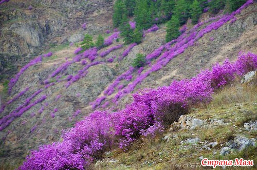 А это горы с цветущим маральником. Фотография не моя, но так хотелось показать вам эту красату.