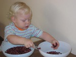 Лепить из пластилина можно начинать уже в 2 года, главное подбирать доступные задания и не забывать мыть руки. Лепим колбаски, колечки, шарики; режем пластилиновую колбаску пластмассовым ножом на множество мелких кусочков, а потом слепляем кусочки снова. Из каждого маленького кусочка делаем лепешку или монетку. Можно надавить на нашу лепешку настоящей монеткой, чтобы получить отпечаток. Если пластилин по какой-то причине вас пугает, изготовьте для малыша соленое тесто. Игра доставит удовольствие вне зависимости от результата. Вот рецепт: мука - соль- вода- подсолнечное масло. Мука и соль берется в одинаковом количестве, а воды на треть меньше (например, на стакан муки стакан соли, 2/3 стакана воды, ст. ложка масла). Перемешать и замесить. Если лепится плохо, добавить воды. Тесто может долго хранится в холодильнике в целлофановом пакете. Чтобы вылепленные фигурки стали твердыми, запекайте их в духовке, чем дольше, тем лучше. Затвердевшие фигурки можно будет раскрасить красками. Всякий раз, когда вы готовите настоящее тесто, давайте кусочек полепить и малышу.