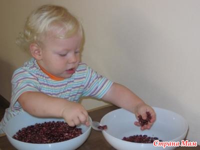 мы любили макароны перебирать, бабулины бусы(там почти чемодан целый), а еще есть у нас стол с ширщавой поверхностью подходила к нему и сама массаж пальчикам делала,ну и конечно пазлы паролоновые крупные, и шнуровки разнообразные!